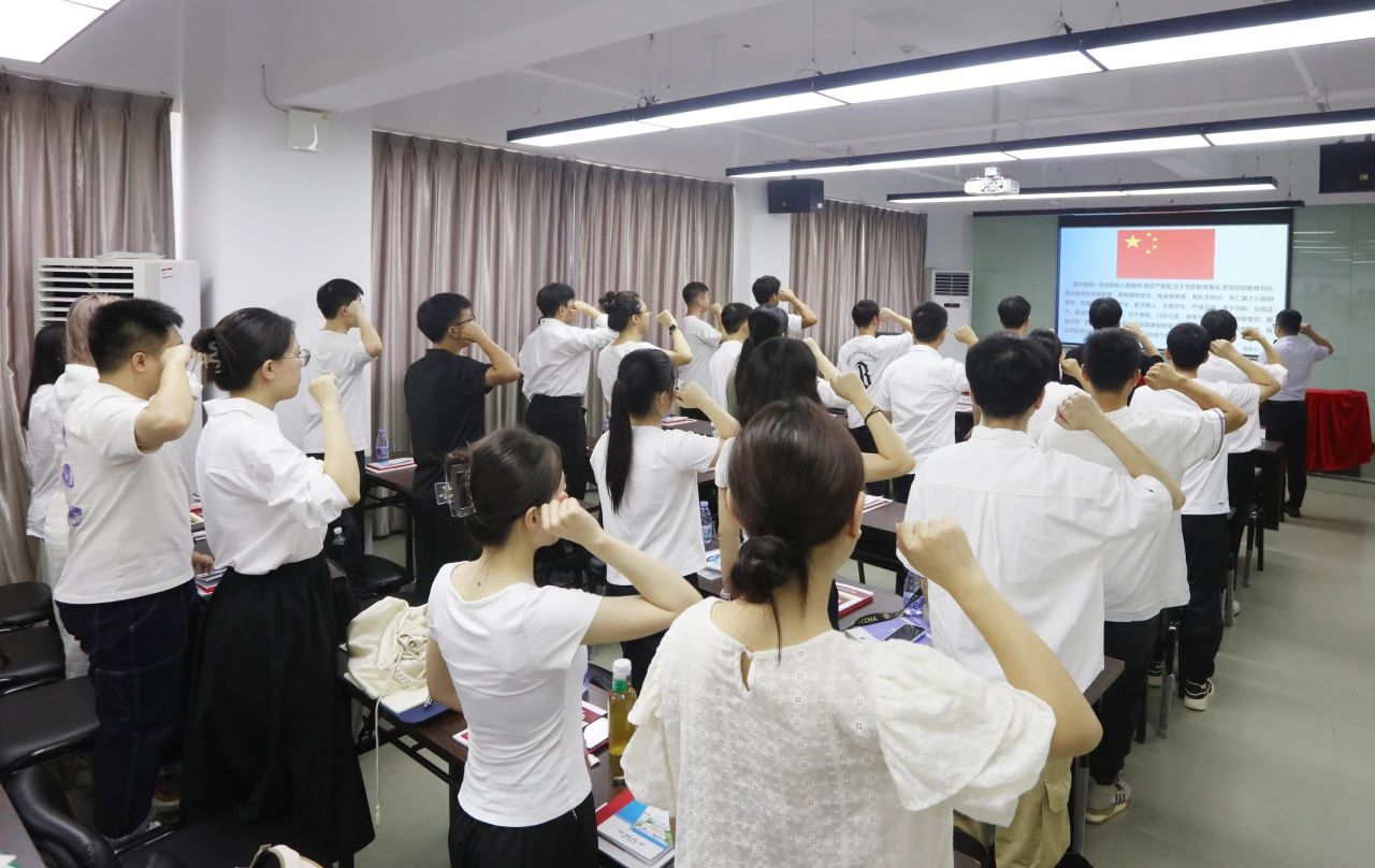 新教师入职宣誓仪式通过佩戴校徽、发放聘书、签订《华亿在线(中国)教师师德师风承诺书》和入职宣誓等环节,增强新入职教师的荣誉感、责任感、使命感和职业认同感,坚定“为党育人、为国育才”的初心使命。